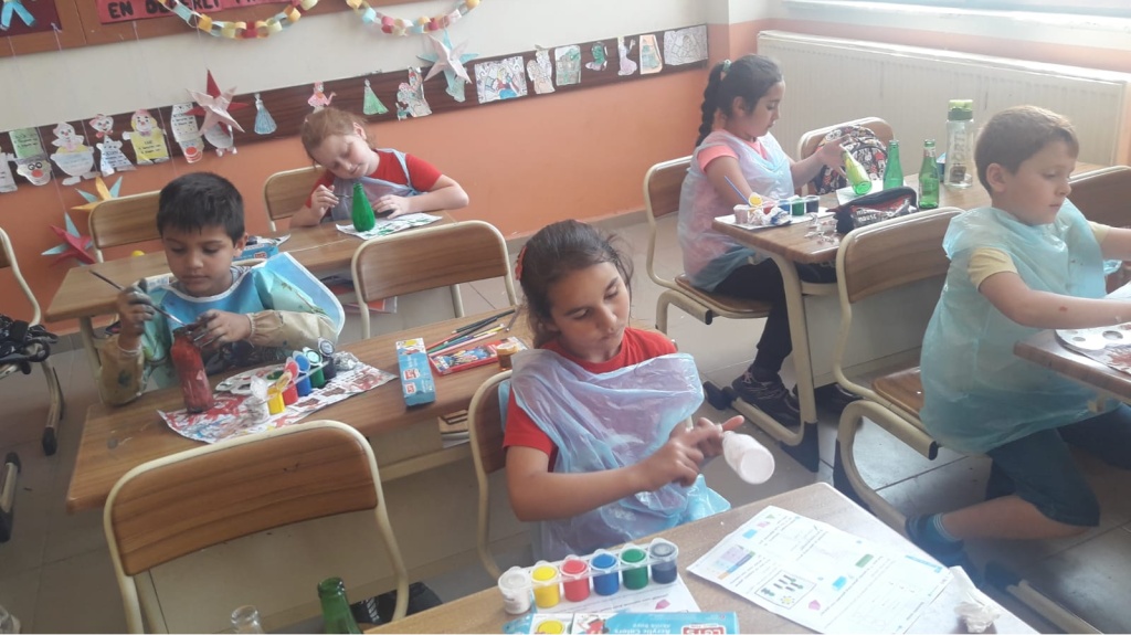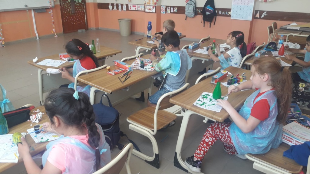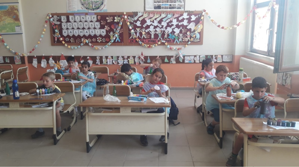 Okulumuz 2 /ASınıfı öğrencilerimiz,öğretmenleri Bahar YILDIZ Rehberliğinde yaratıcı bir etkinliğe imza attılar.Geleneksel sanatlarımızdan çini motiflerinden ilham alınarak düzenlenen 'Cam Boyama' Etkinliği,öğrencilerimizin hem sanatsal yönlerini geliştirmelerine hemde kültürel değerlerimizi tanımalarına olanak sağladı.Etkinlikte öğrenciler,cam yüzeyler üzerine canlı renklerle desenler çizerek hayal güçlerini ortaya koydular.Çini sanatının zarif motiflerini kendi yorumlarıyla harmanlayan minik öğrenciler,özgün eserler ortaya çıkardı.Bu etkinlik sayesinde öğrencilerimiz hem eğlenceli vakit geçirdi hemde geleneksel sanatlarımız hakkında bilgi sahibi oldu.Öğretmenimiz Bahar YILDIZ ve emeği geçen tüm öğrencilerimize teşekkür ediyor ,bu güzel çalişmaların ilham vermesini diliyoruz.